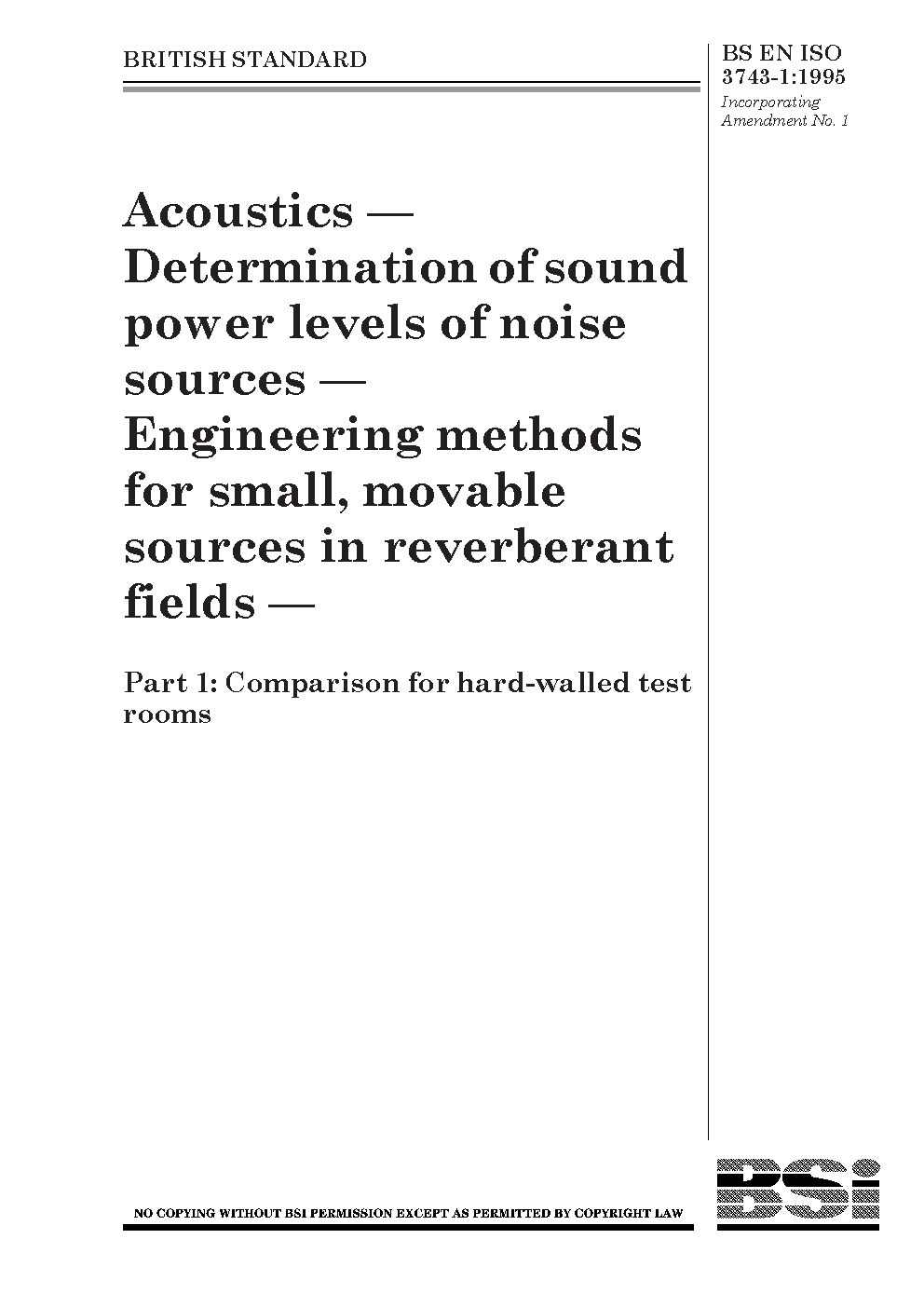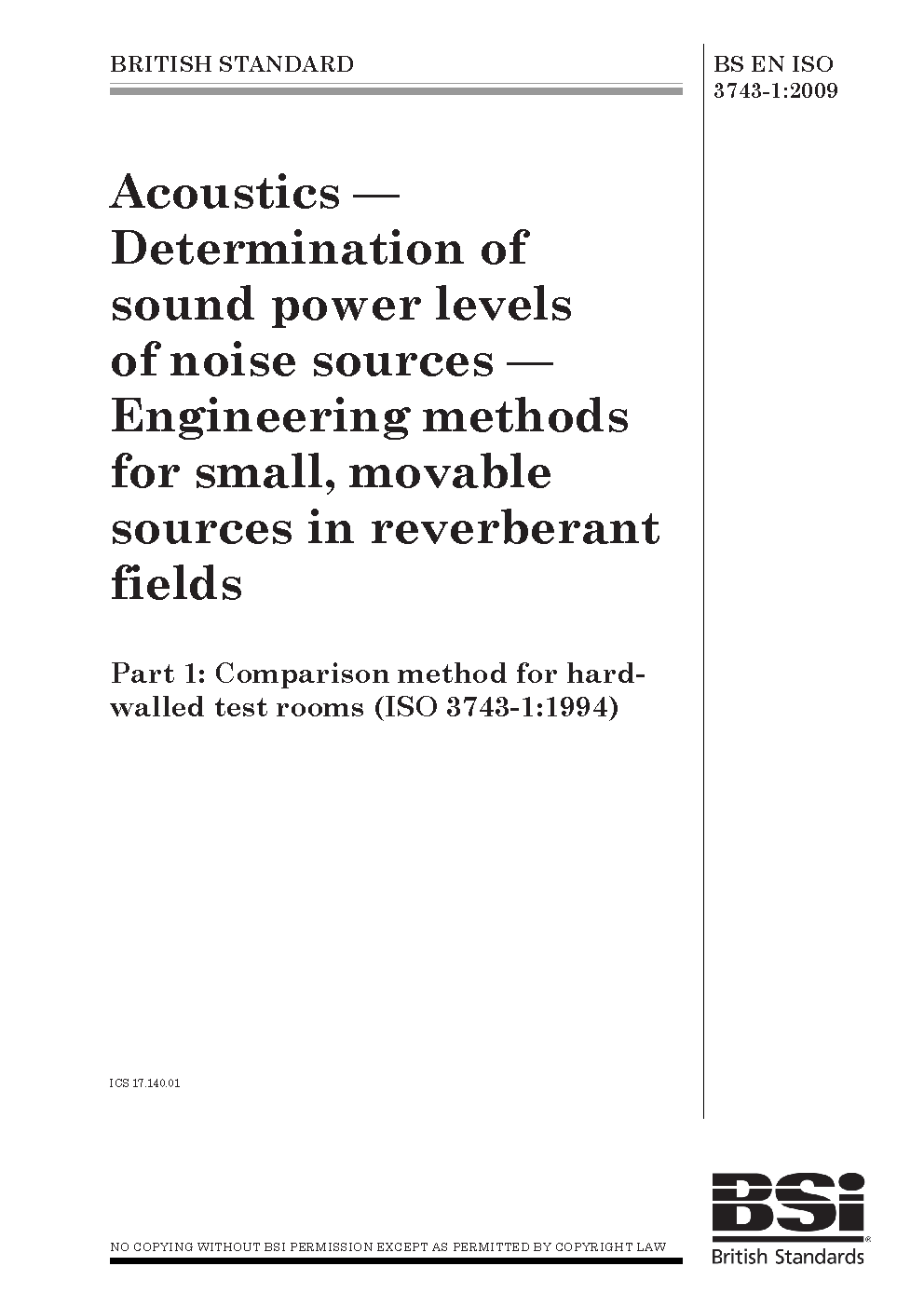 Acoustics. Determination of sound power levels and energy noise sources using pressure. Engineering methods for small movable in reverberant fields Comparison method a hard-walled test room