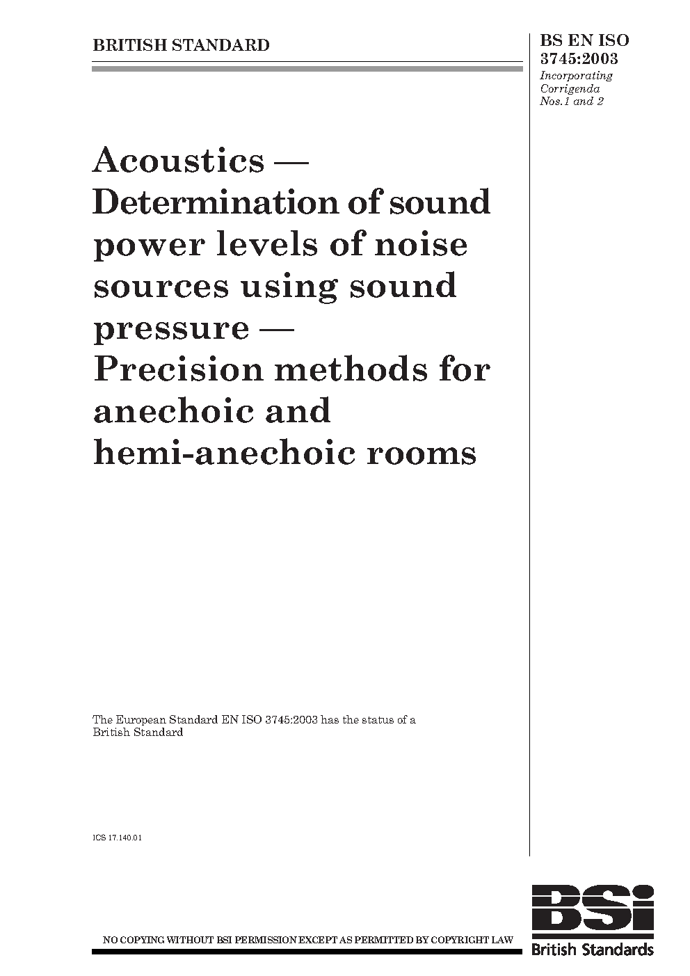Acoustics. Determination of sound power levels of noise sources using sound pressure. Precision methods for anechoic and semi-anechoic rooms
