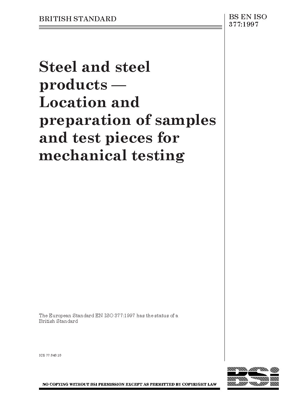 Steel and steel products. Location and preparation of samples and test pieces for mechanical testing