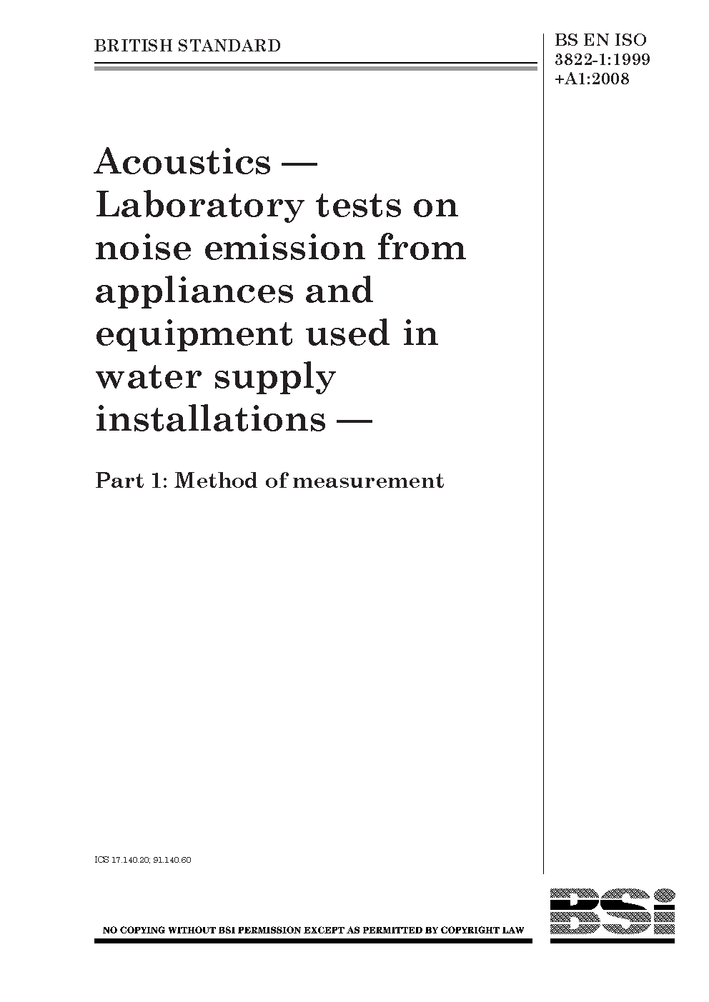 Acoustics. Laboratory tests on noise emission from appliances and equipment used in water supply installations Method of measurement