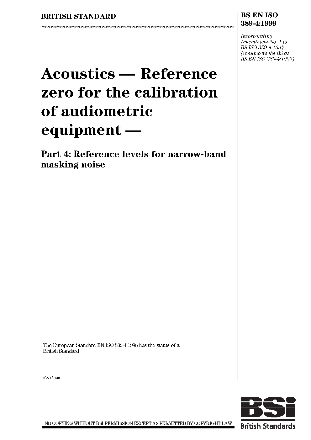 Acoustics. Reference zero for the calibration of audiometric equipment levels narrow-band masking noise