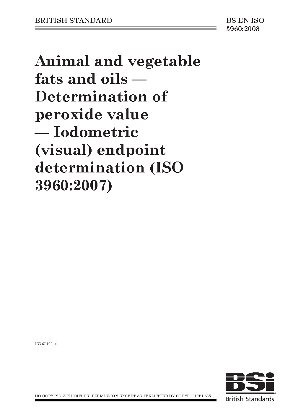 Animal and vegetable fats and oils. Determination of peroxide value. Iodometric (visual) endpoint determination