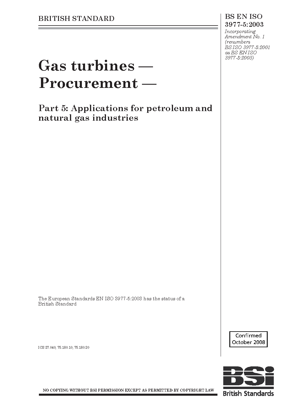 Gas turbines. Procurement Applications for petroleum and natural gas industries