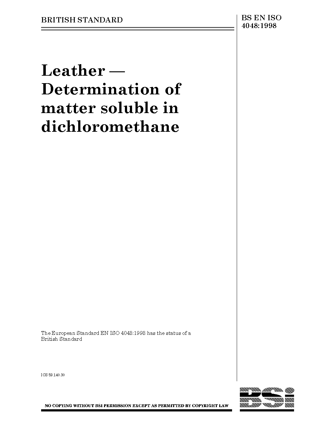 Leather. Chemical tests. Determination of matter soluble in dichloromethane and free fatty acid content