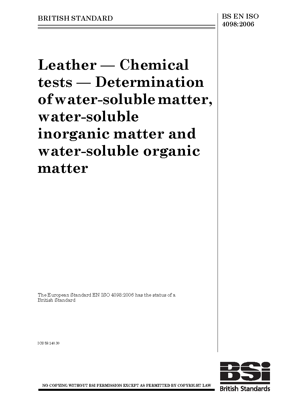Leather. Chemical tests. Determination of water-soluble matter, water-soluble inorganic matter and water-soluble organic matter