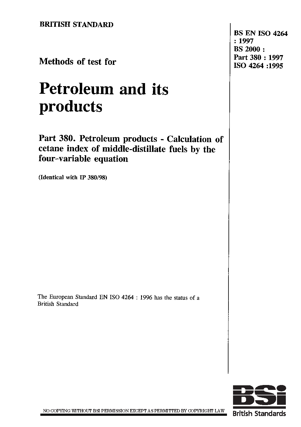 Petroleum products. Calculation of cetane index of middle-distillate fuels by the four-variable equation