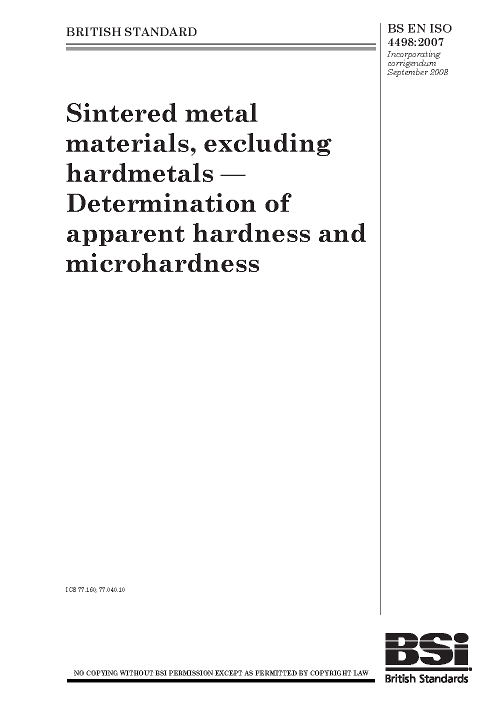 Rockwell hardness measurement;Powder metallurgy;Sintered products;Hardness measurement;Classification systems;Case-hardening;Sintering;Metals;Vickers hardness measurement;Designations;Hardness testing