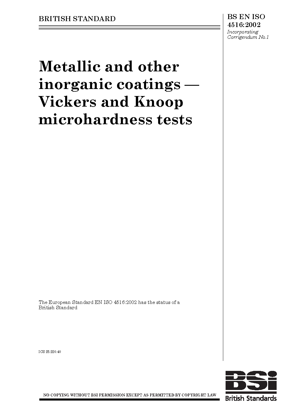 BS EN ISO 4516:2002