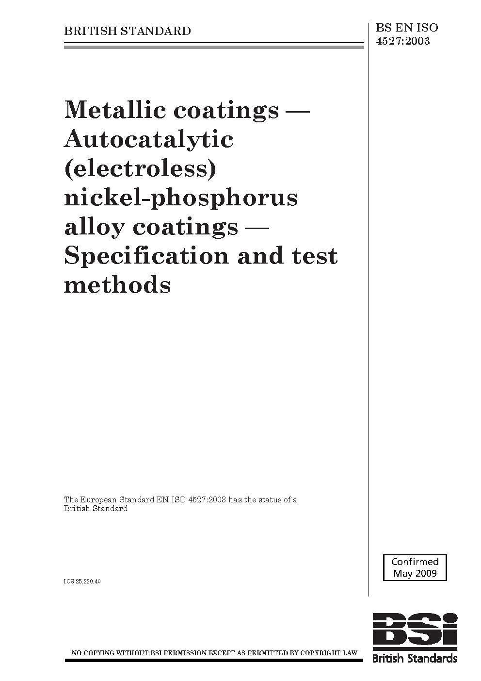 BS EN ISO 4527:2003