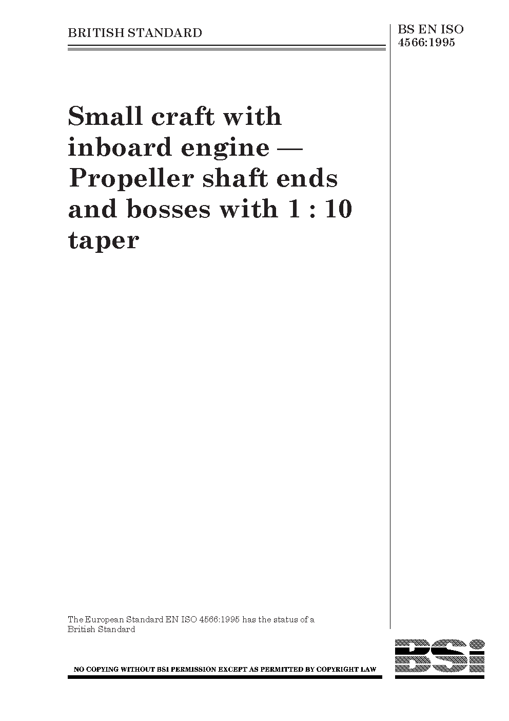 Small craft with inboard engine. Propeller shaft ends and bosses with 1:10 taper