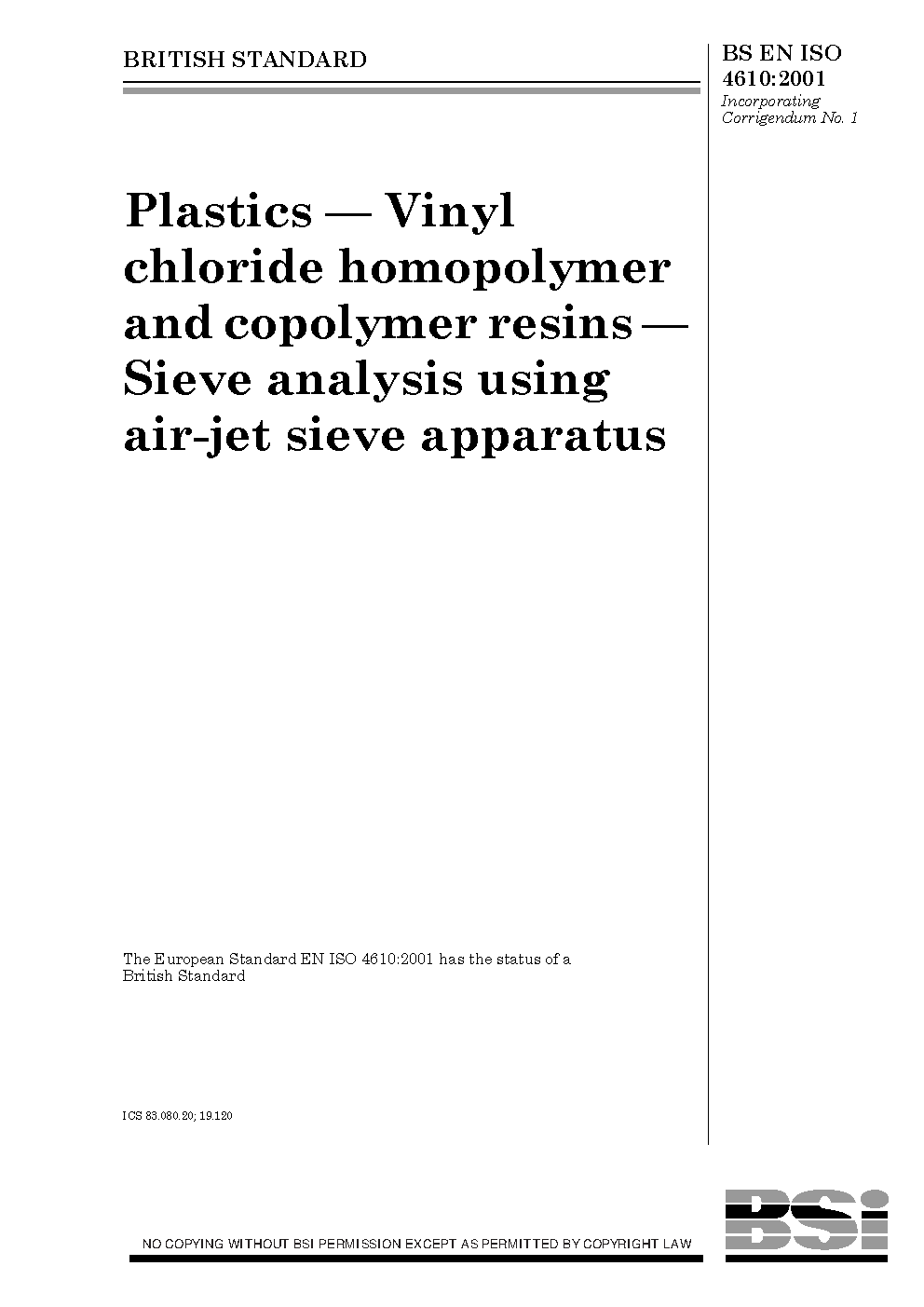BS EN ISO 4610:2001
