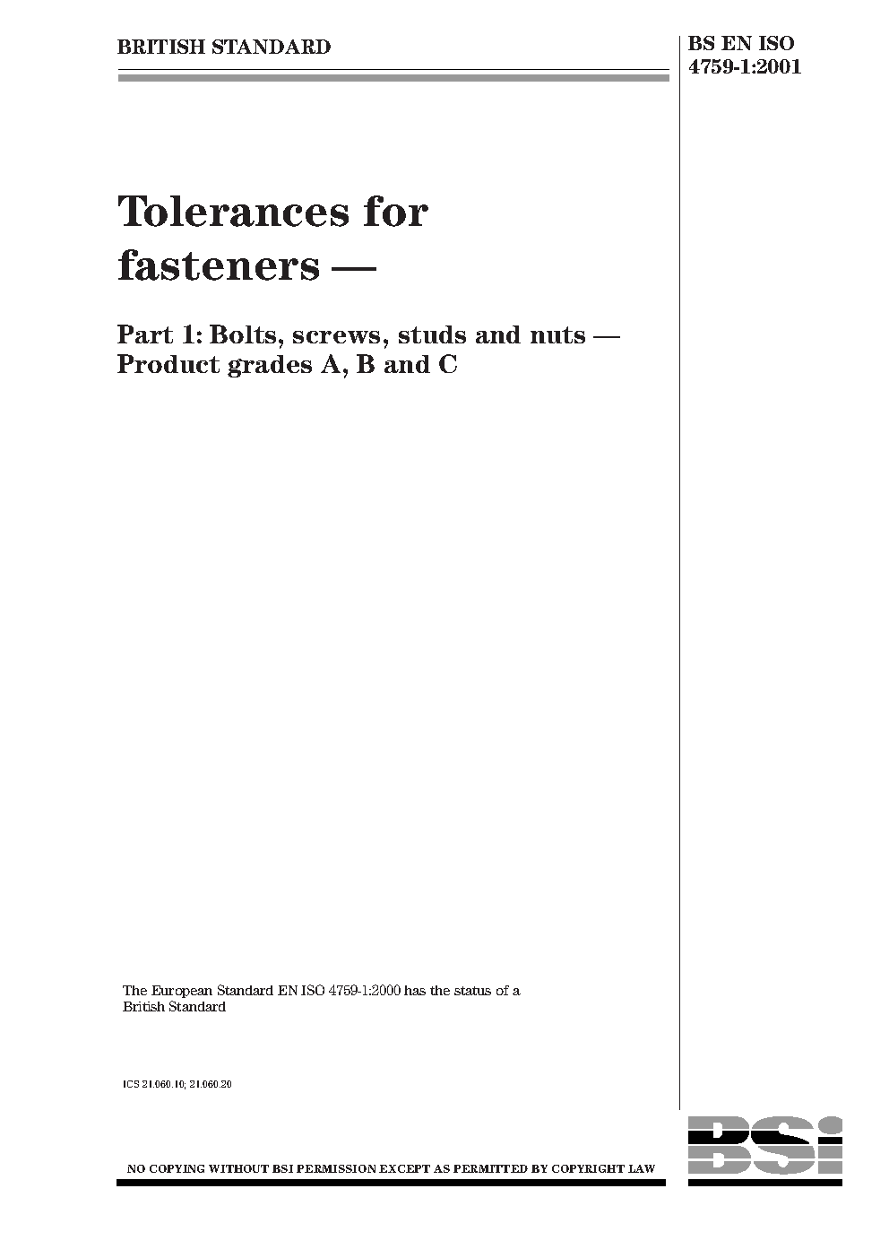 BS EN ISO 4759-1:2001