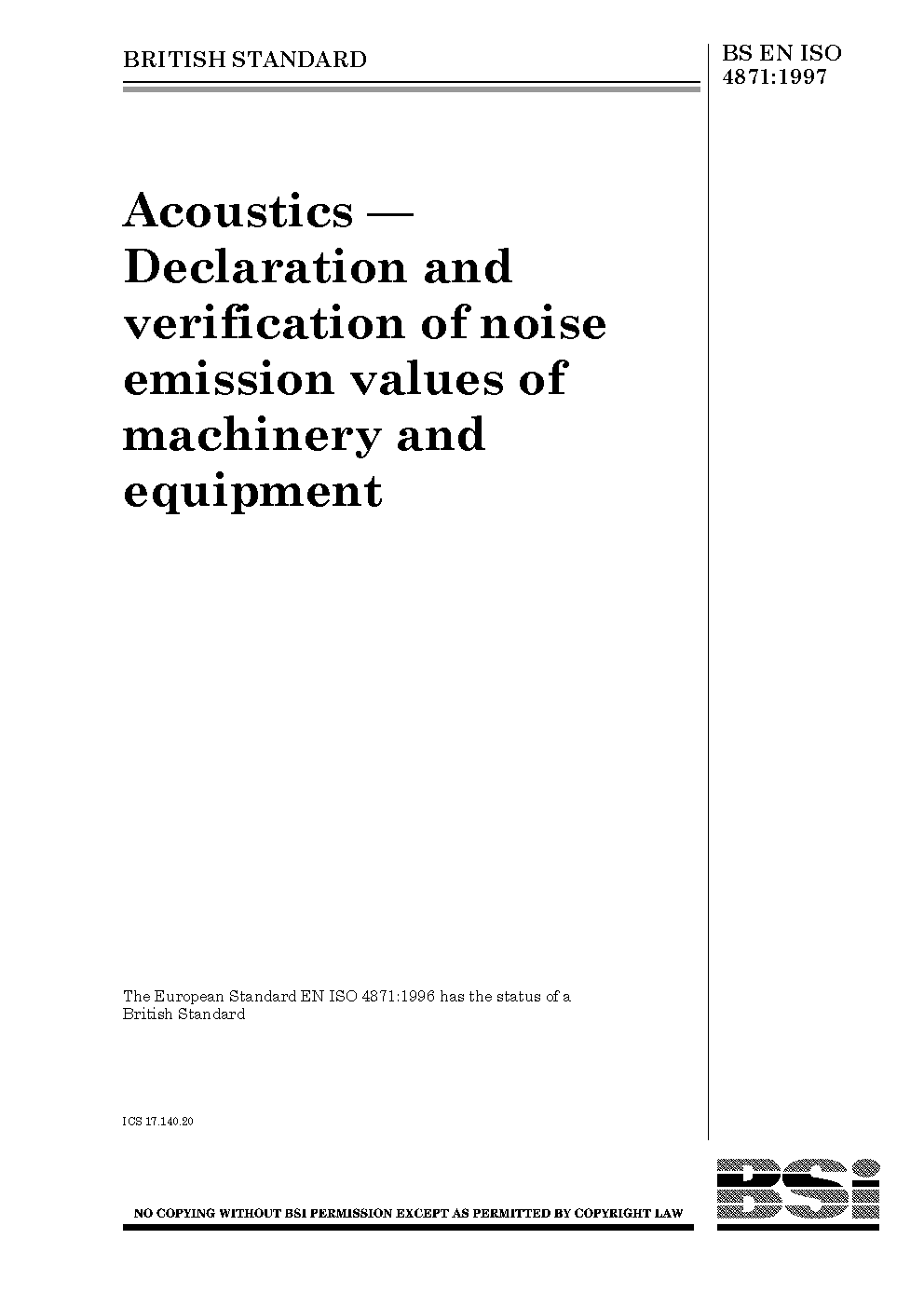 Acoustics. Declaration and verification of noise emission values of machinery and equipment