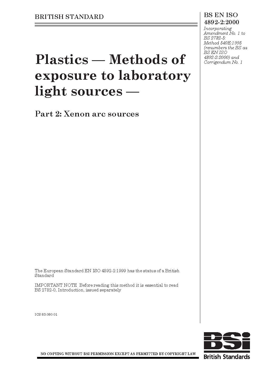 Plastics. Methods of exposure to laboratory light sources Xenon-arc