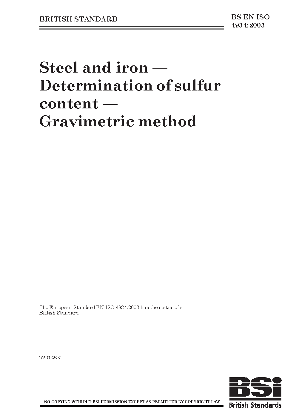 Ferrous metals;Chemical analysis and testing;Determination of content;Iron;Gravimetric analysis;Steels;Sulfur