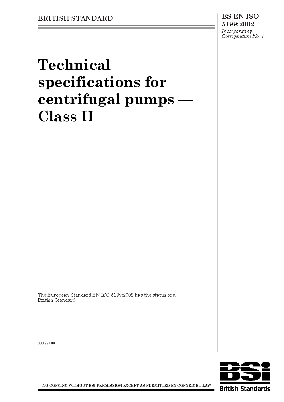 Technical specifications for centrifugal pumps. Class II
