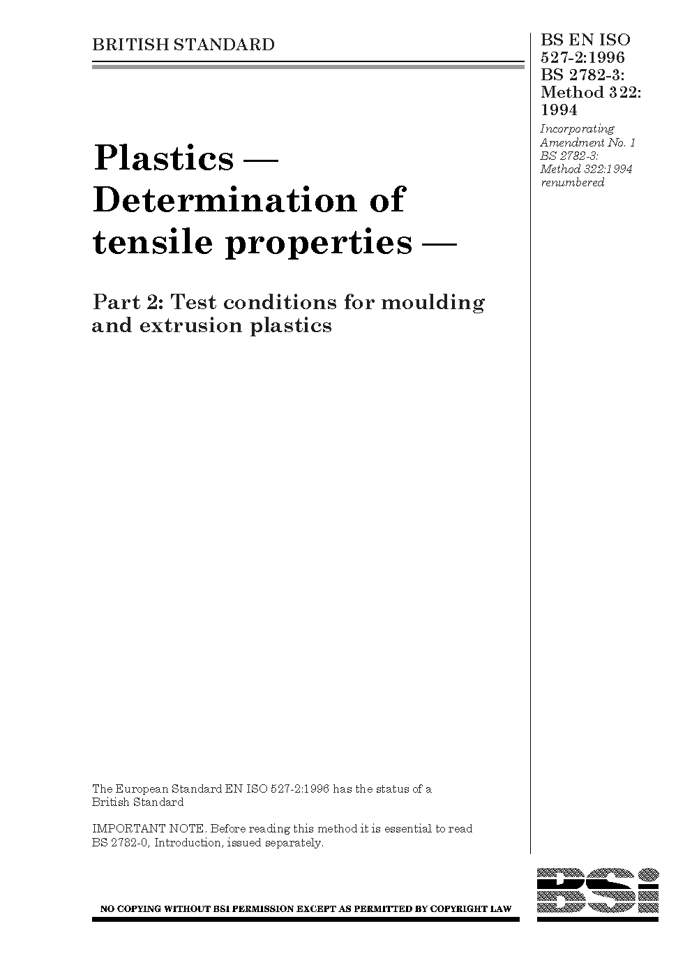 Plastics. Determination of tensile properties Test conditions for moulding and extrusion plastics
