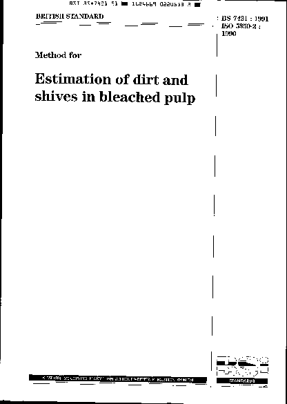 Pulps. Estimation of dirt and shives Inspection mill sheeted pulp