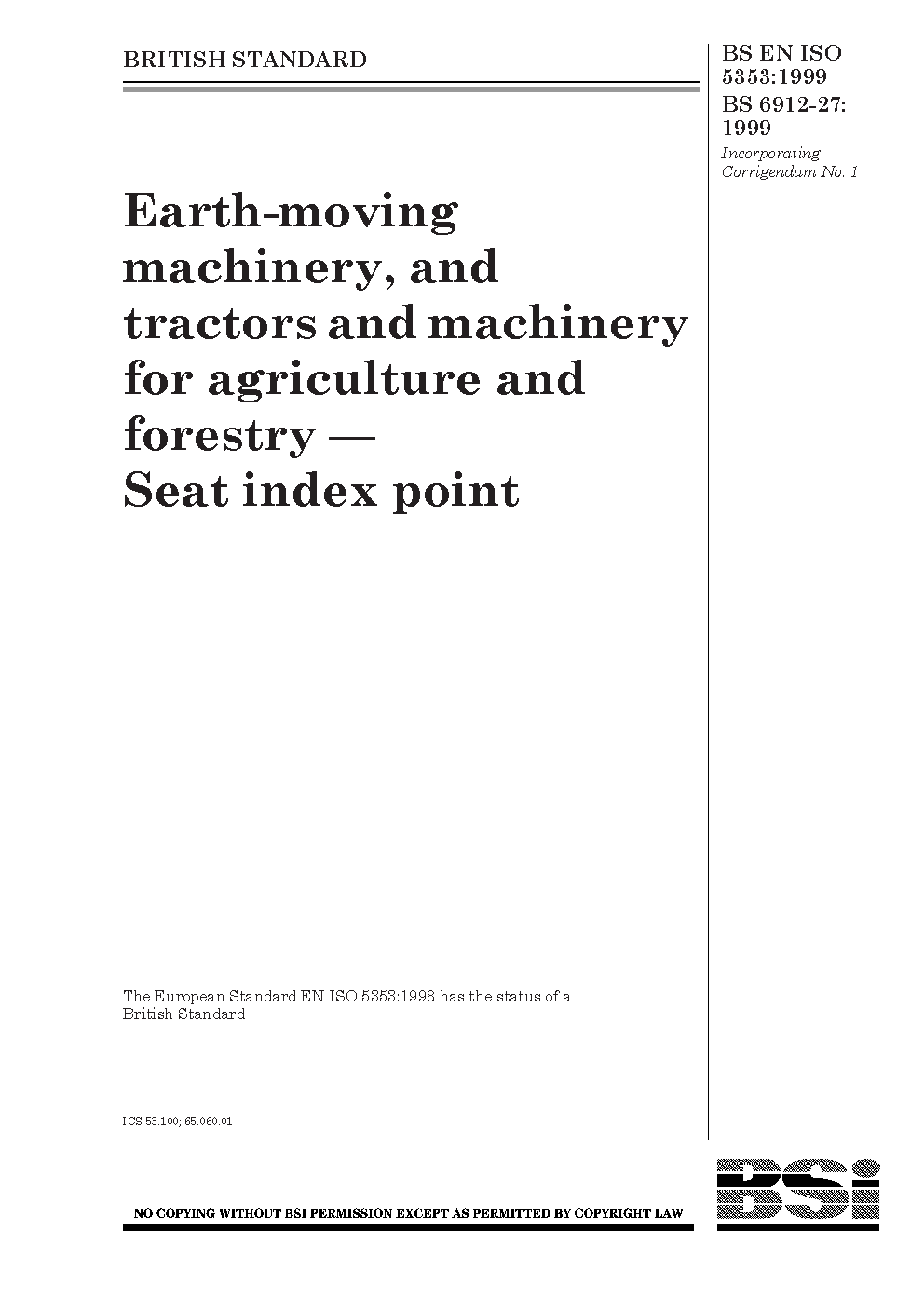 BS EN ISO 5353:1999