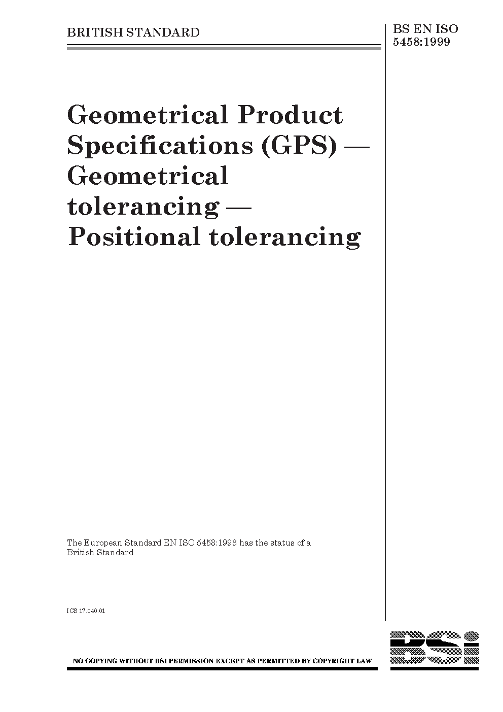 BS EN ISO 5458:1999