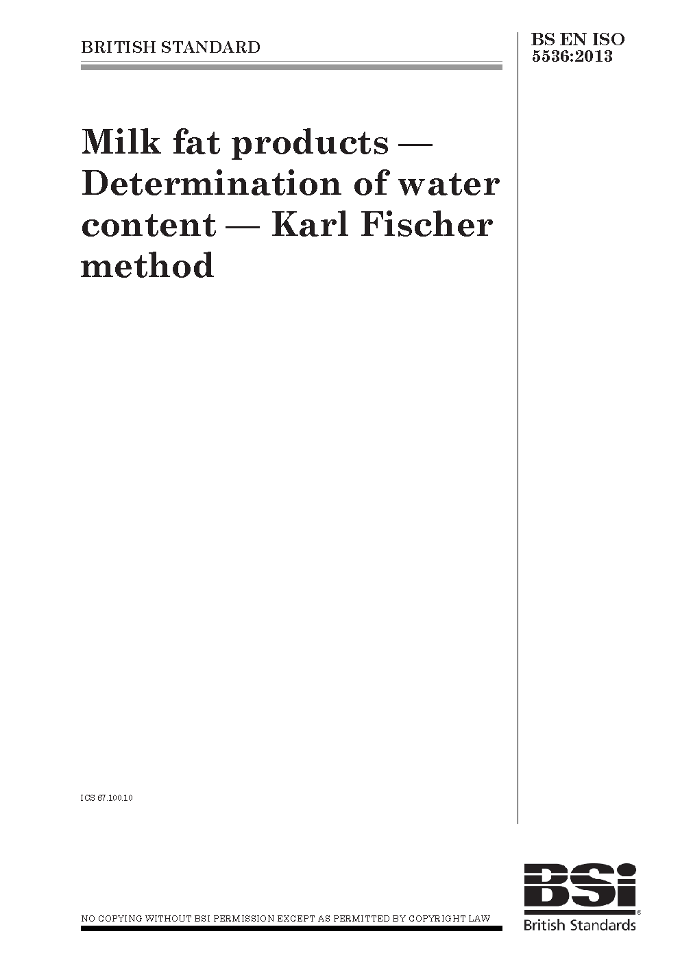 Butterfat;Karl Fischer method;Water content determination;Chemical analysis and testing;Food products;Fats;Determination of content;Milk;Dairy products