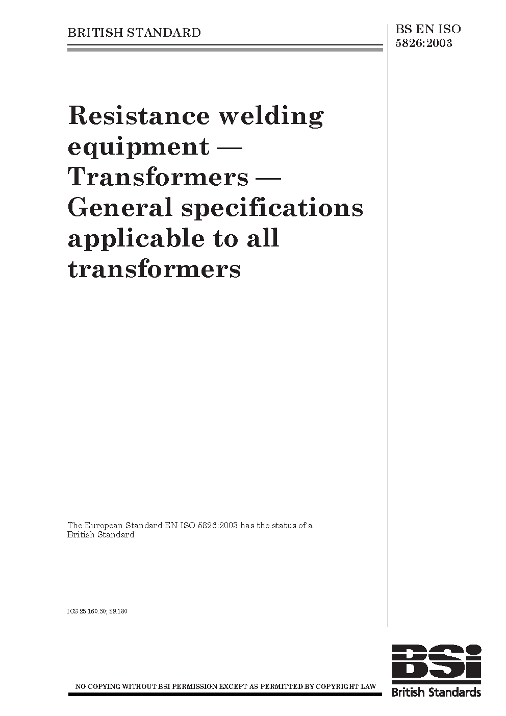 Resistance welding equipment. Transformers. General specifications applicable to all transformers
