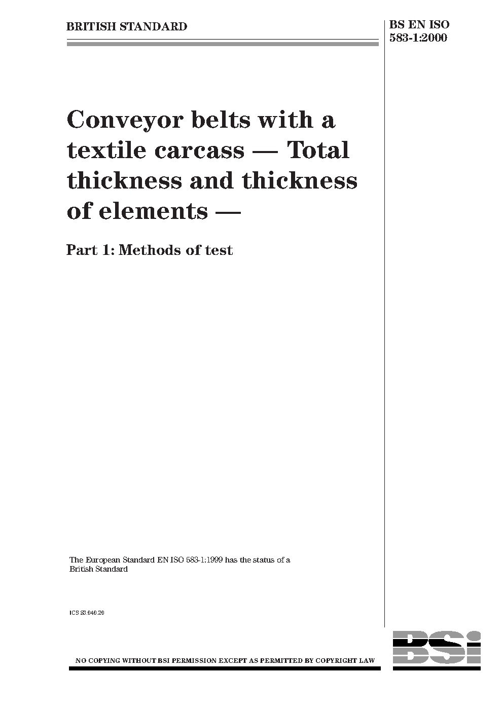 Conveyor belts with a textile carcass. Total thickness and of elements Methods test