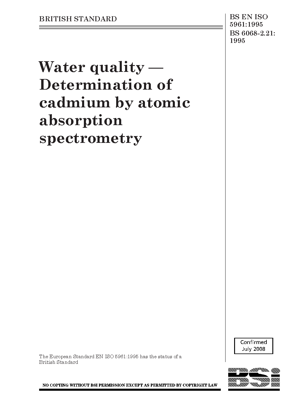 Water quality. Determination of cadmium by atomic absorption spectrometry