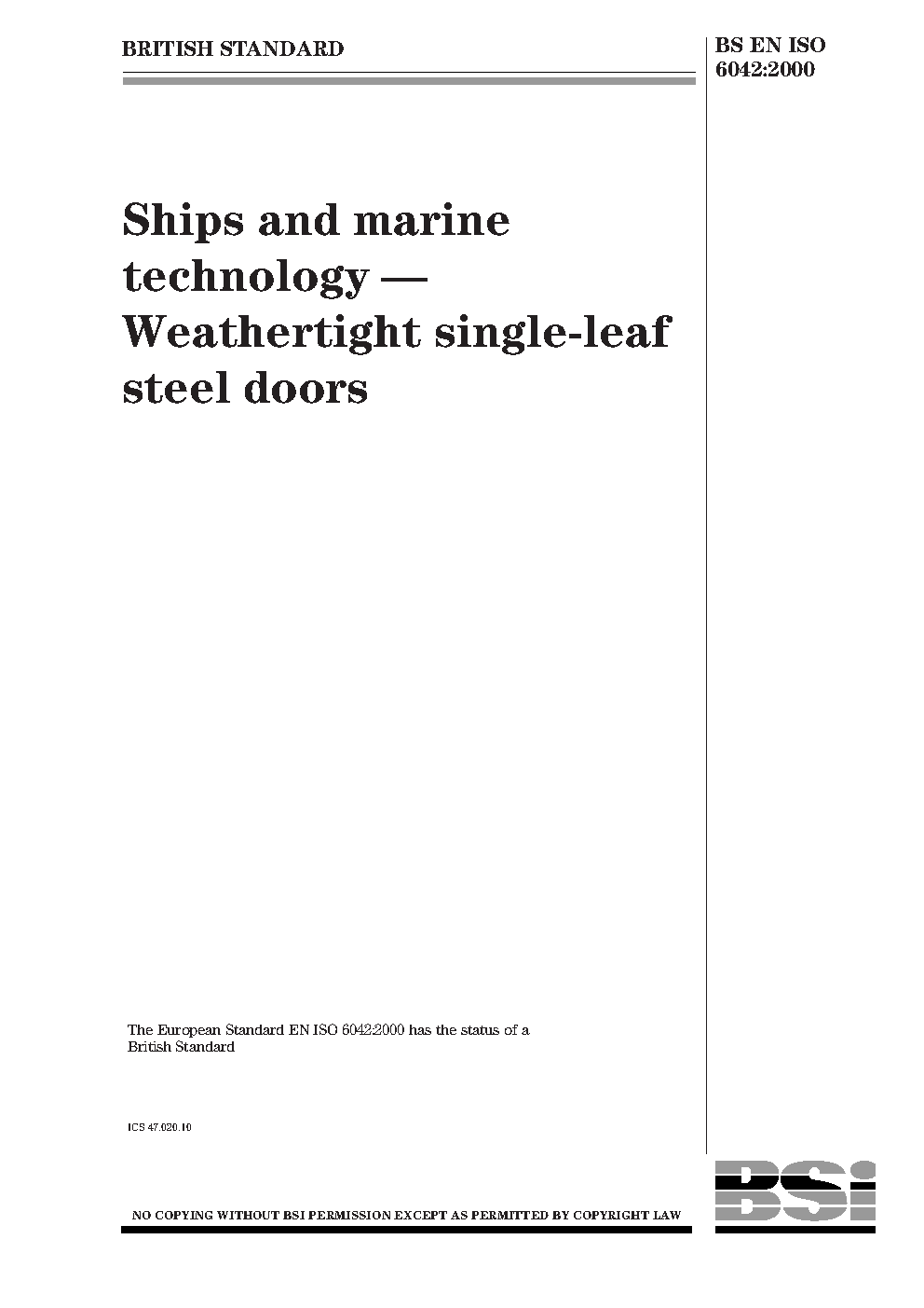 Ships and marine technology. Weathertight single-leaf steel doors