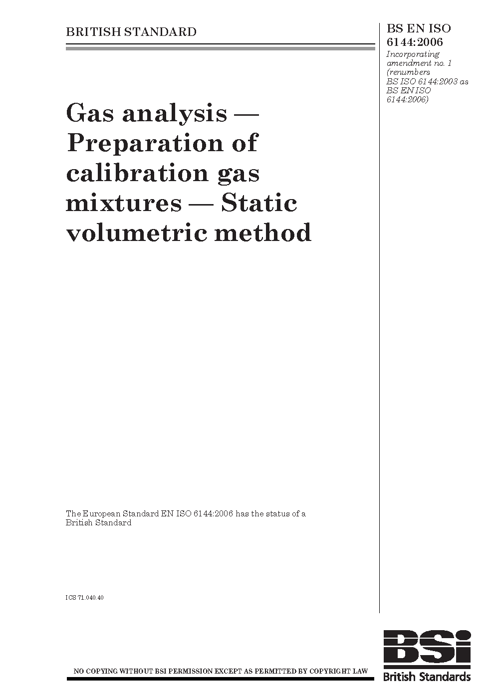 BS EN ISO 6144:2006