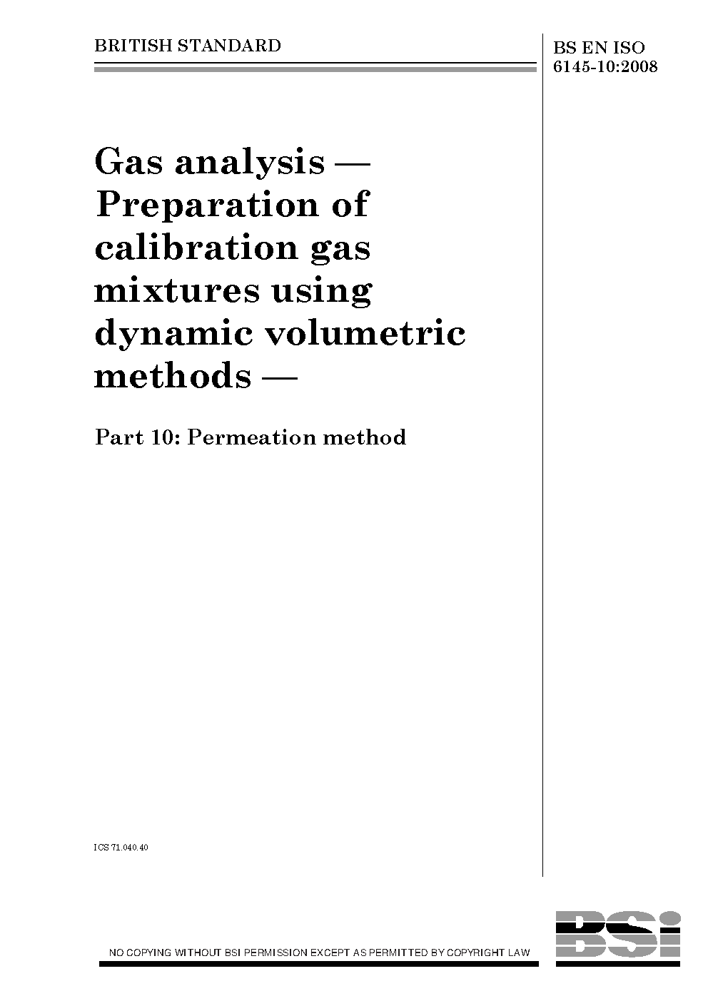 Gas analysis. Preparation of calibration gas mixtures using dynamic volumetric methods Permeation method