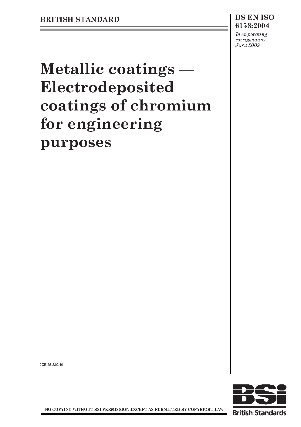 Metallic coatings. Electrodeposited coatings of chromium for engineering purposes
