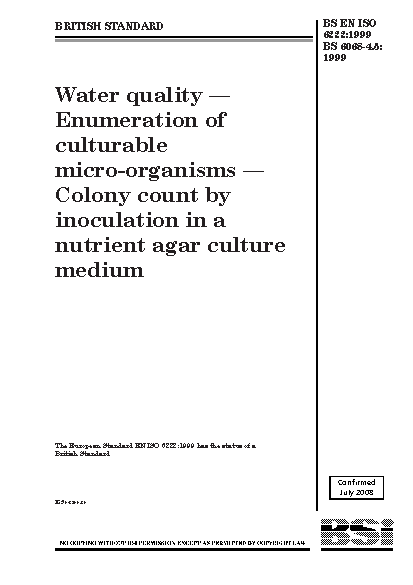 Water quality. Enumeration of culturable micro-organisms. Colony count by inoculation in a nutrient agar culture medium