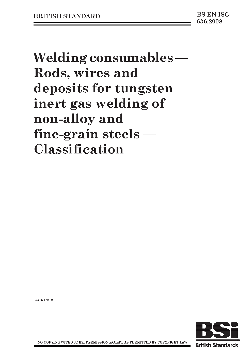 Welding consumables. Rods, wires and deposits for tungsten inert gas welding of non-alloy and fine-grain steels. Classification