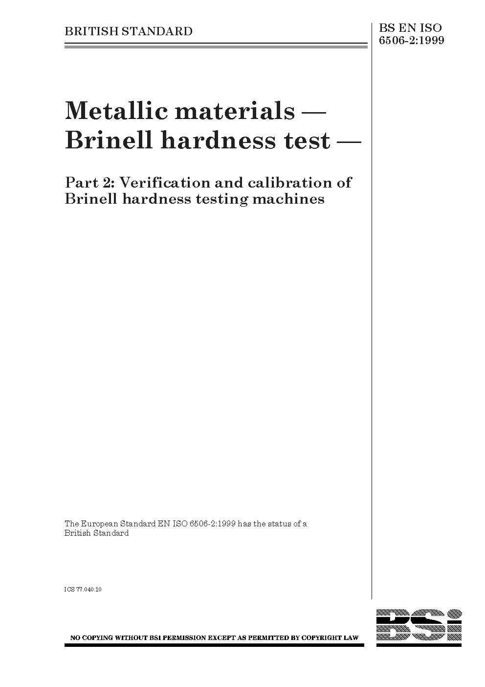 Metallic materials. Brinell hardness test Verification and calibration of testing machines