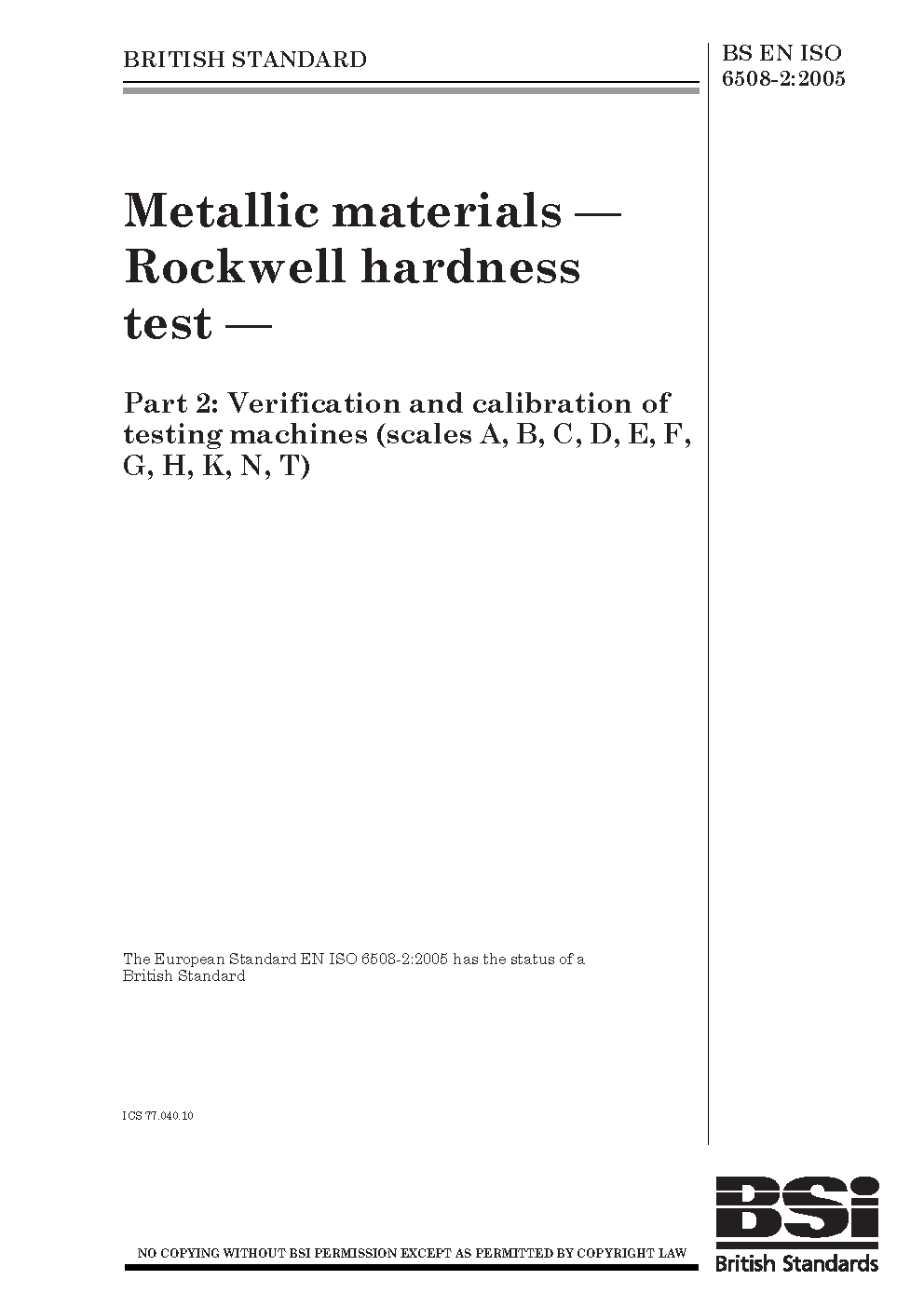 Metallic materials. Rockwell hardness test Verification and calibration of testing machines (scales A, B, C, D, E, F, G, H, K, N, T)