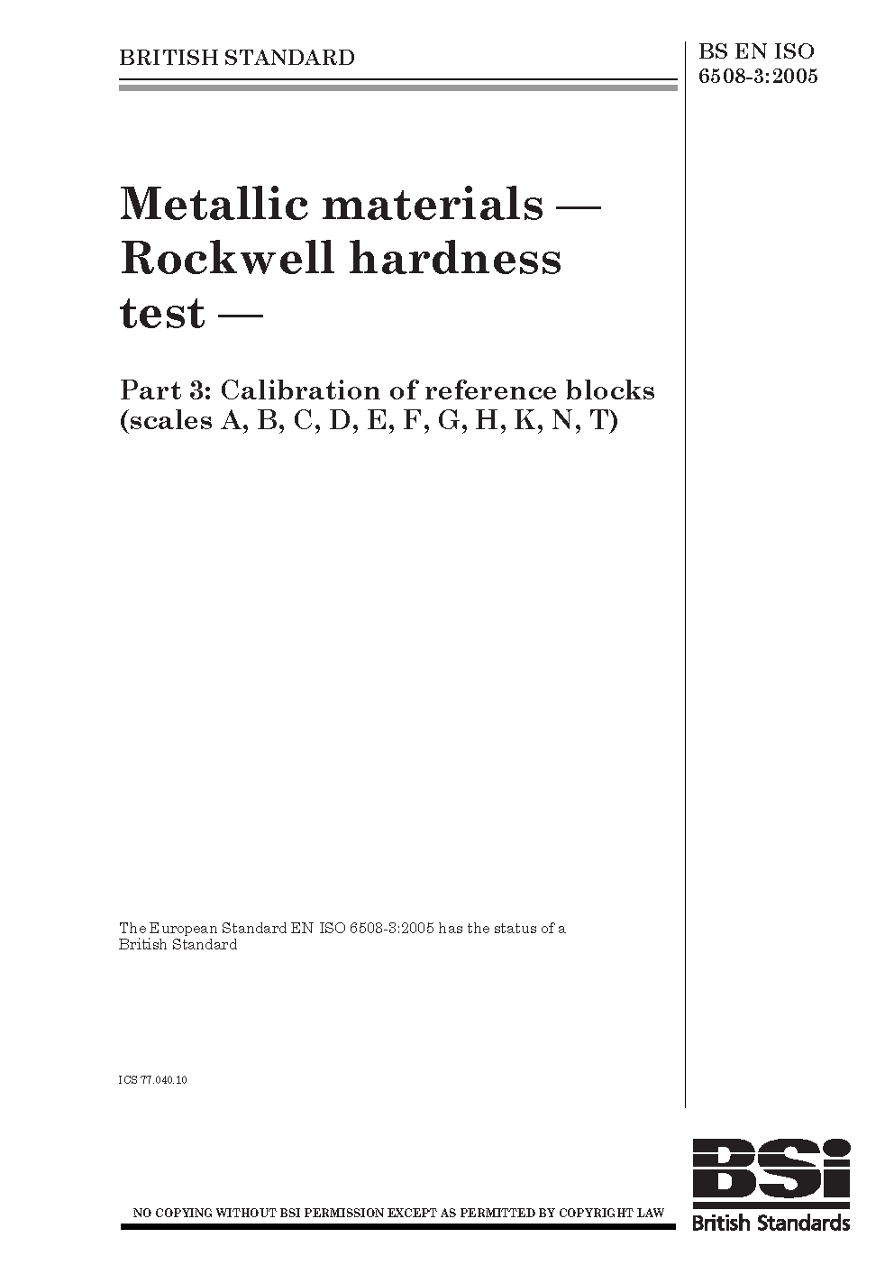 BS EN ISO 6508-3:2005