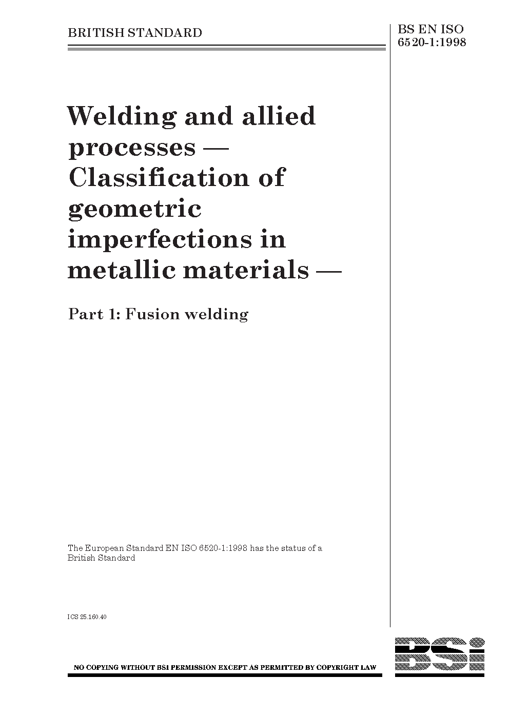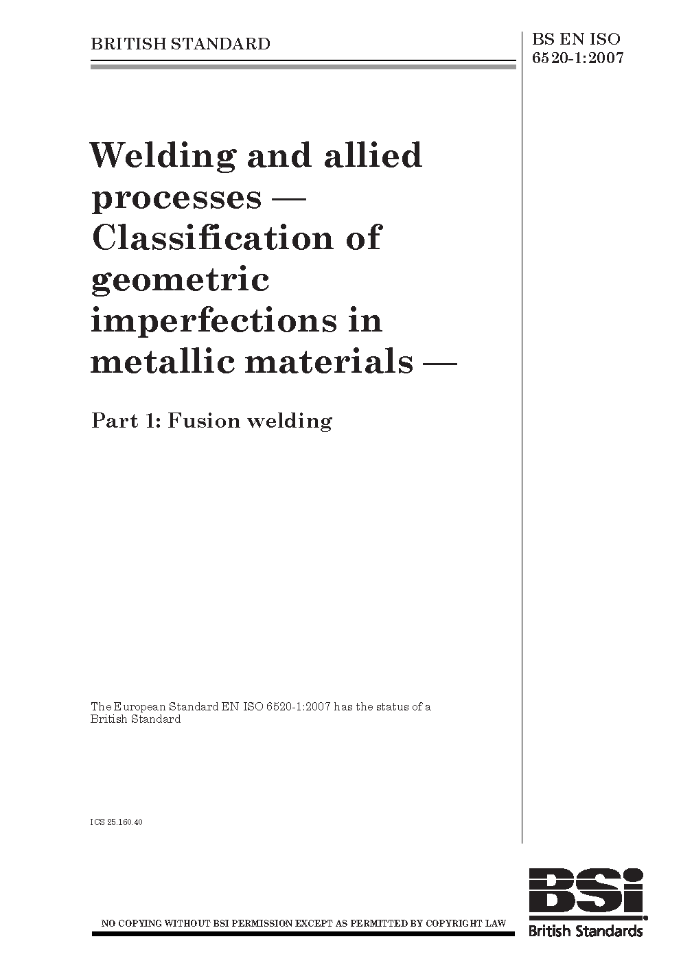 Welding and allied processes. Classification of geometric imperfections in metallic materials Fusion welding