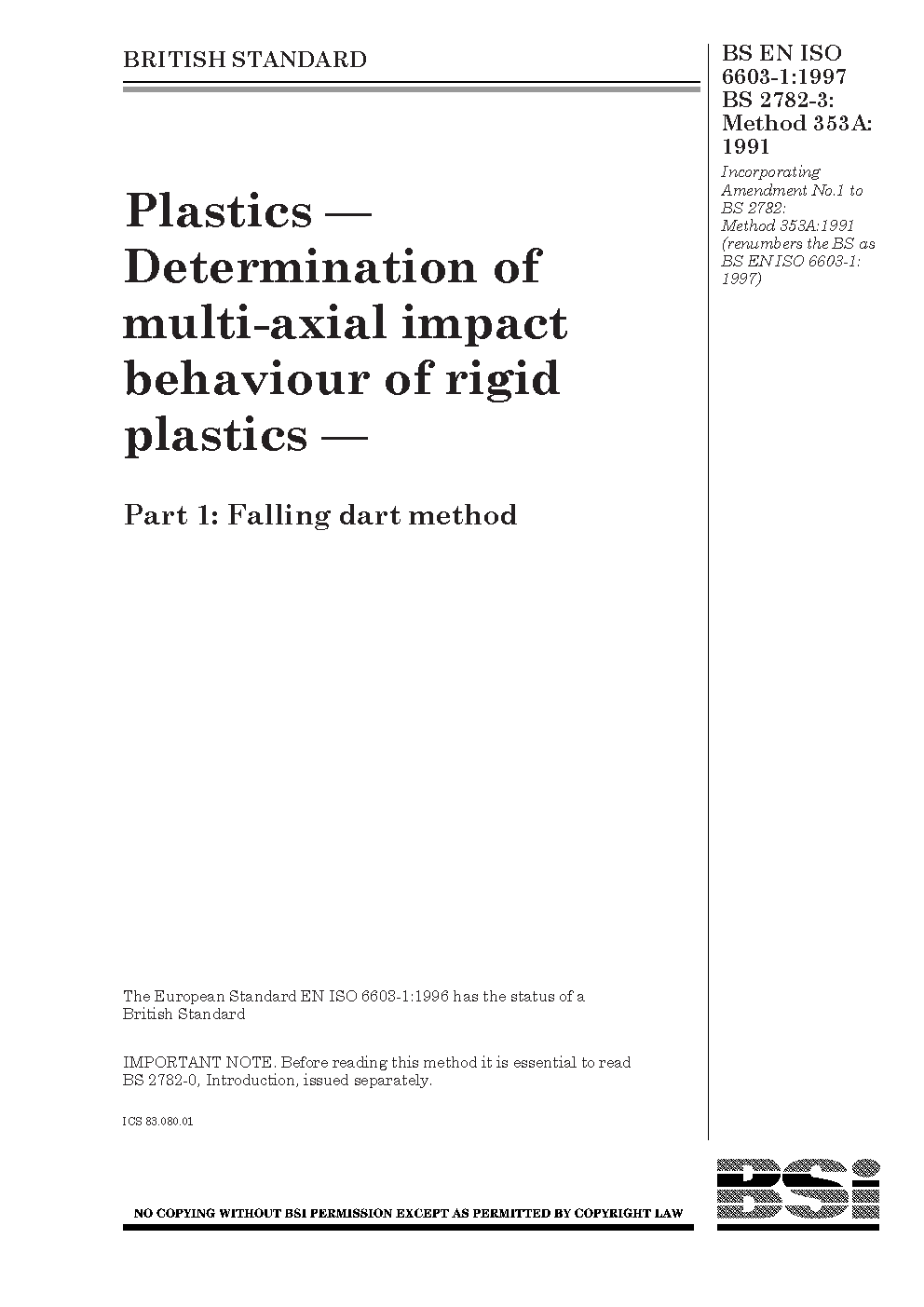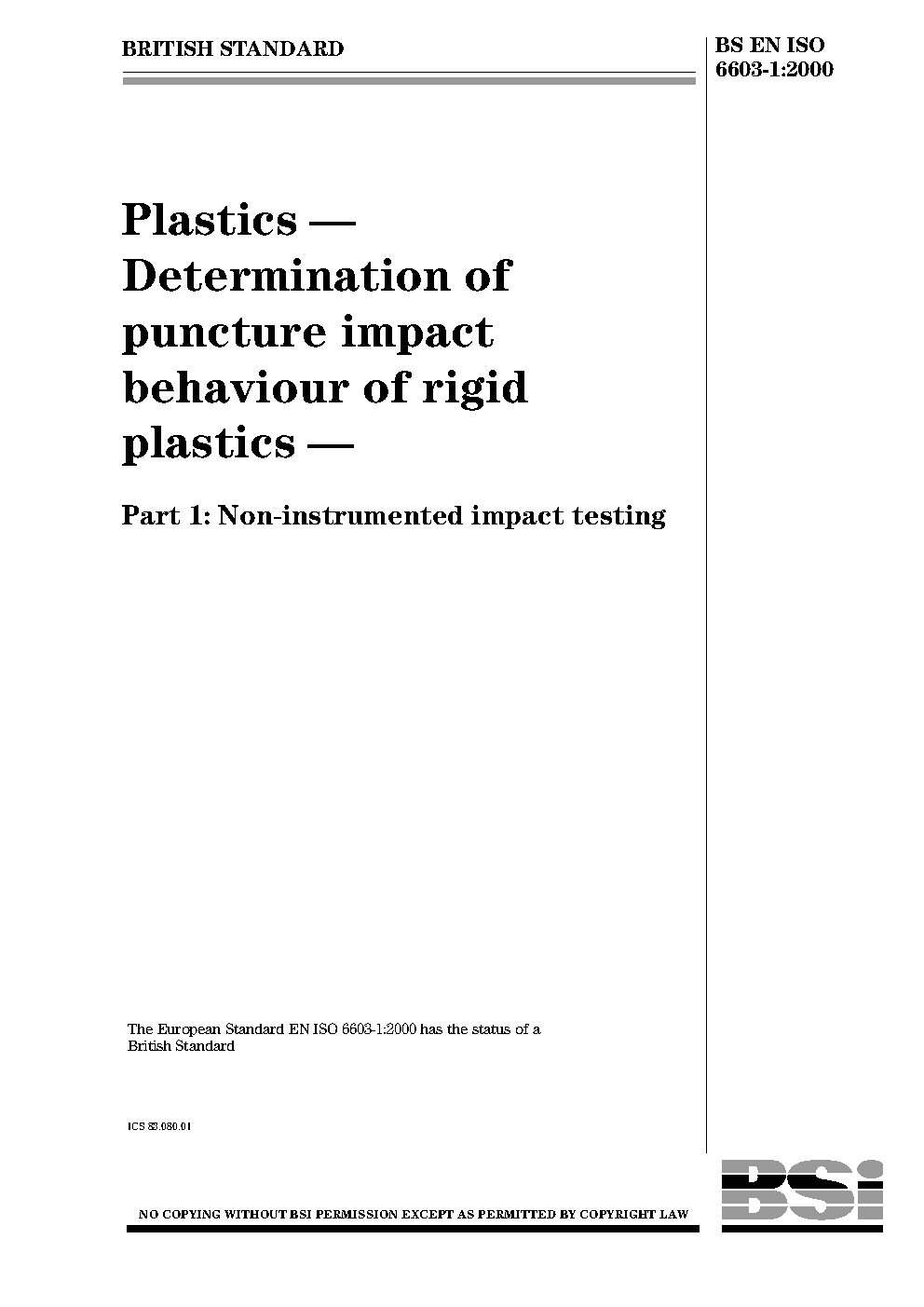 Plastics. Determination of multi-axial impact behaviour rigid plastics Non-instrumented testing