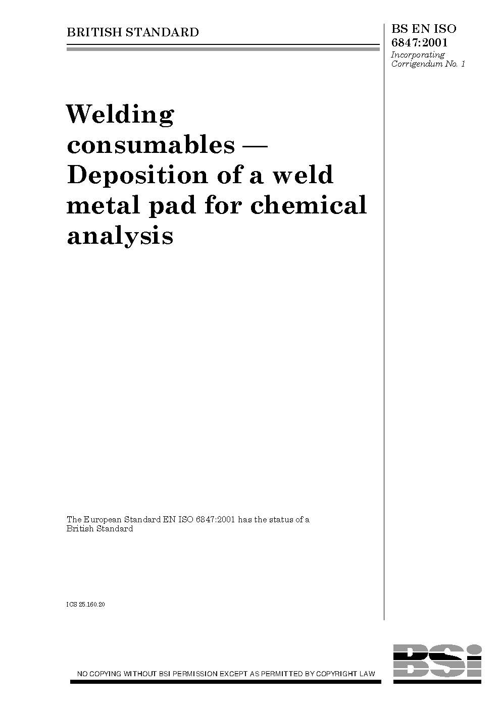 Welding consumables. Deposition of a weld metal pad for chemical analysis