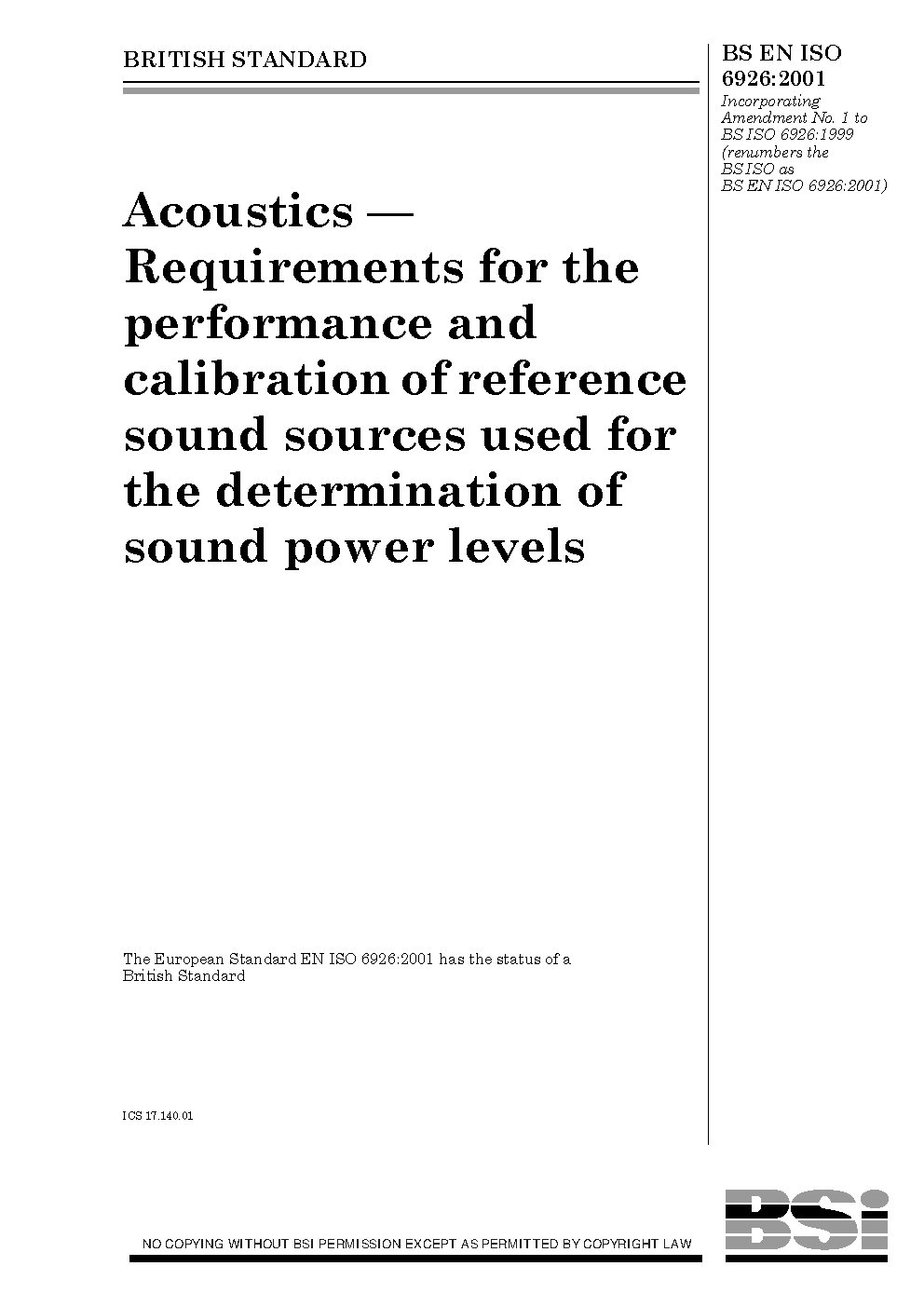 BS EN ISO 6926:2001