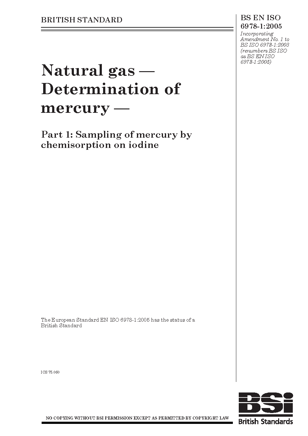 Natural gas. Determination of mercury Sampling by chemisorption on iodine