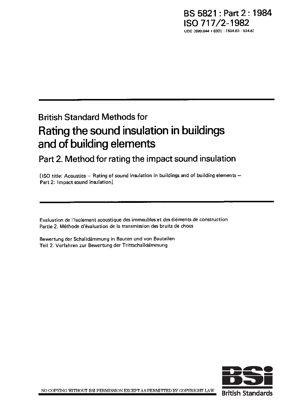 Acoustics. Rating of sound insulation in buildings and building elements Impact