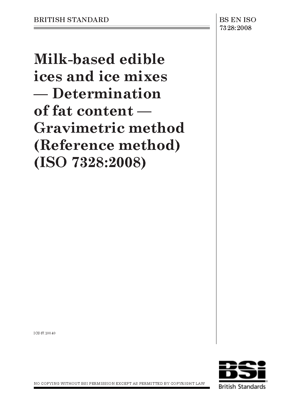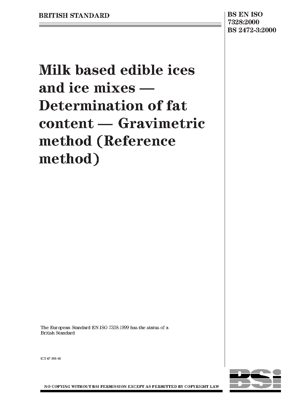 Milk-based edible ices and ice mixes. Determination of fat content. Gravimetric method (Reference method)