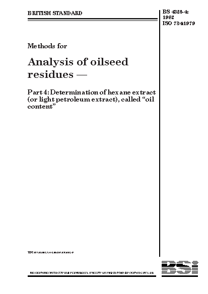 Oilseed residues. Determination of oil content Extraction method with hexane (or light petroleum)