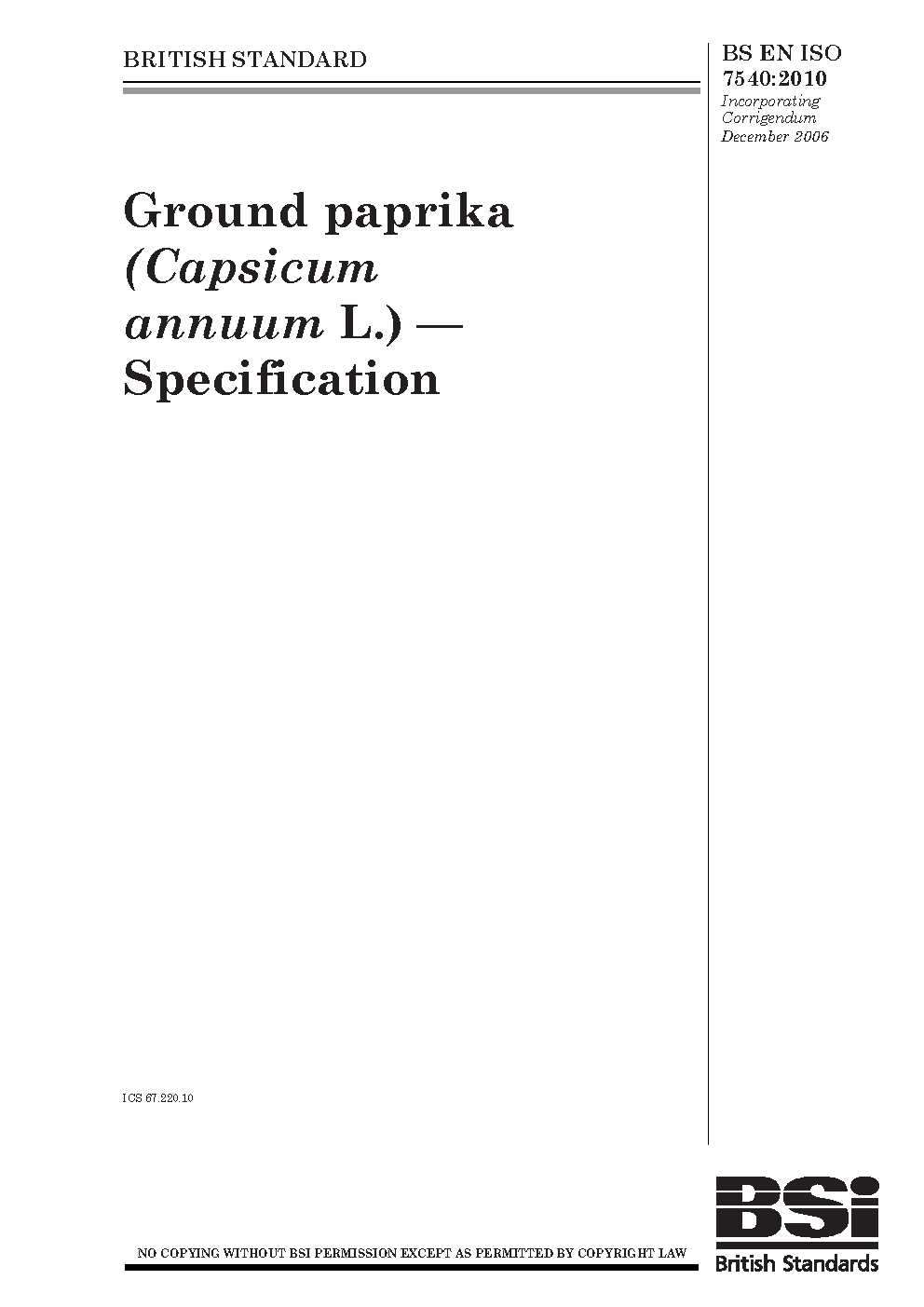 Spices and condiments. Ground sweet and hot paprika (Capsicum annuum L. and Capsicum frutescens L.). Specifications