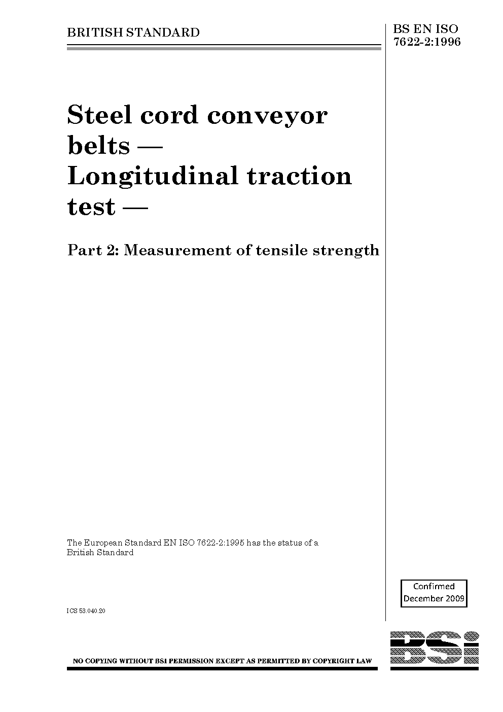 Wire ropes;Steels;Tensile testing;Test specimens;Conveyor belts;Materials handling components;Load-supporting devices;Testing conditions