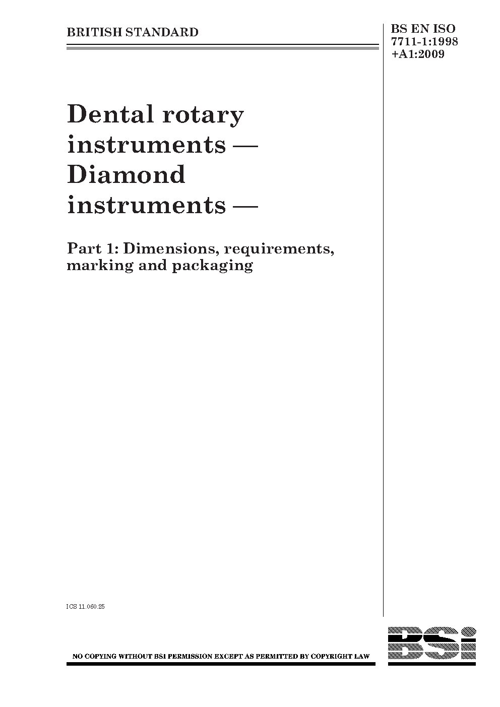 Dental rotary instruments. Diamond instruments Dimensions, requirements, marking and packaging