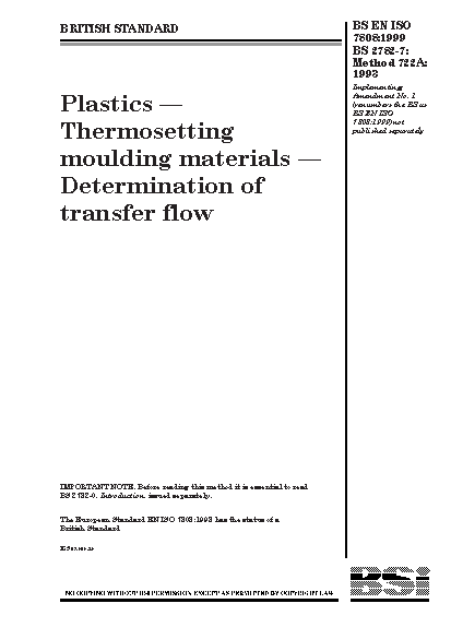 Plastics. Thermosetting moulding materials. Determination of transfer flow