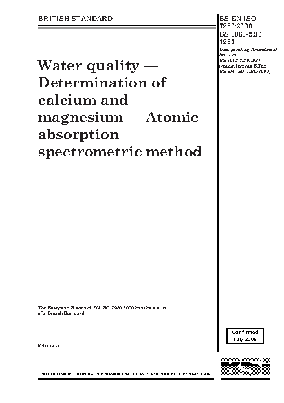 Water quality. Determination of calcium and magnesium. Atomic absorption spectrometric method